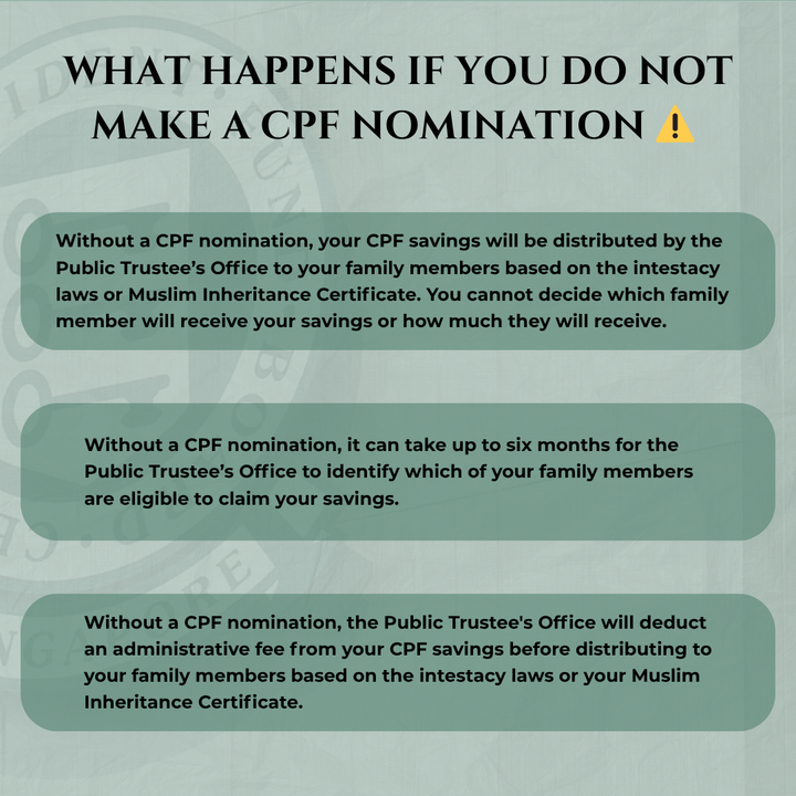 Many assume CPF savings automatically go to family but without a CPF Nomination, your money may be delayed or even distributed by law not love